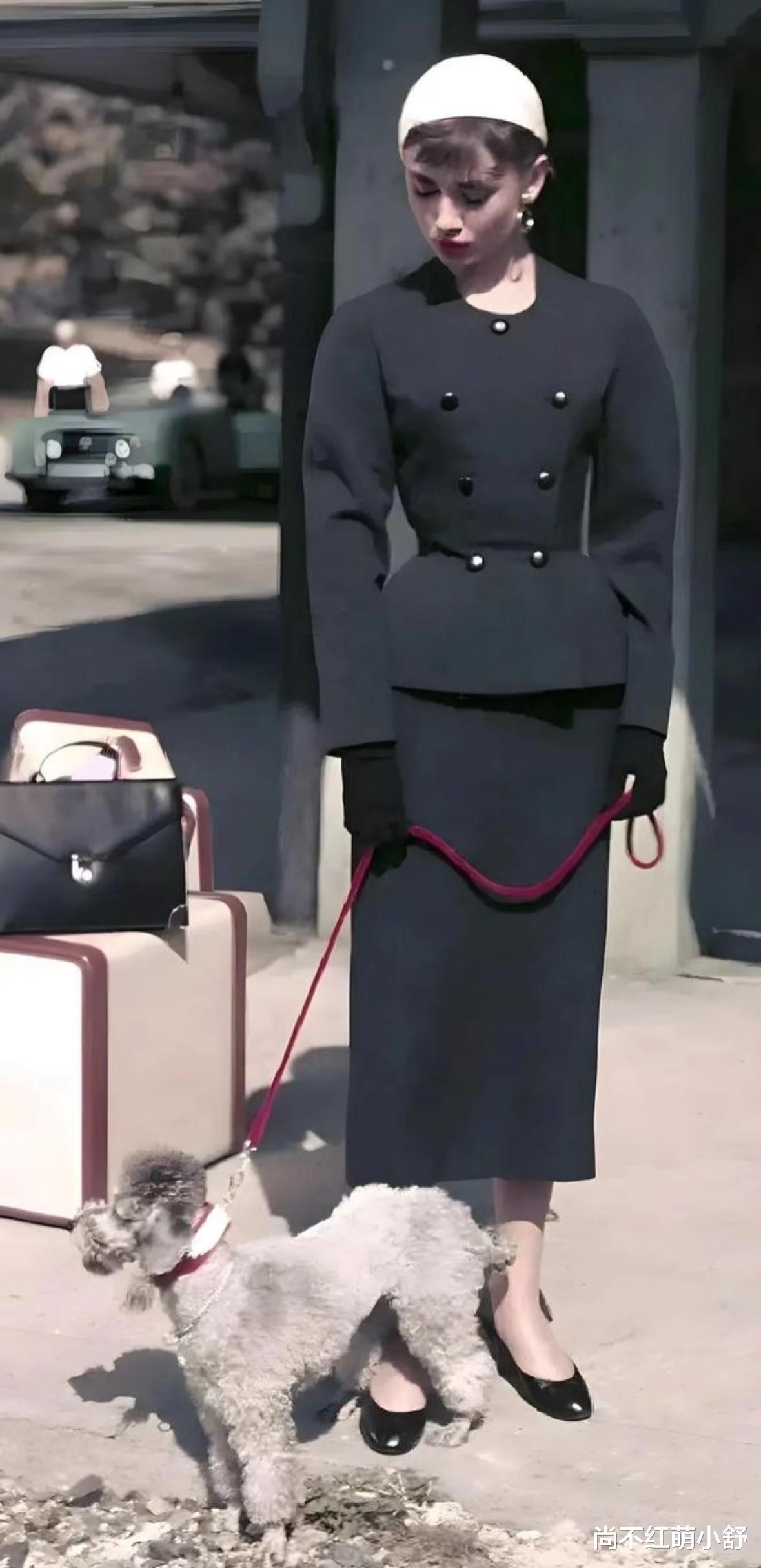 而这套深藏蓝色小香风套装,U领设计与直筒裙型更添优雅感,显瘦提气质。这类色彩沉稳不失亮度,即便在现代,依然是职场女性的优雅范本,值得借鉴。