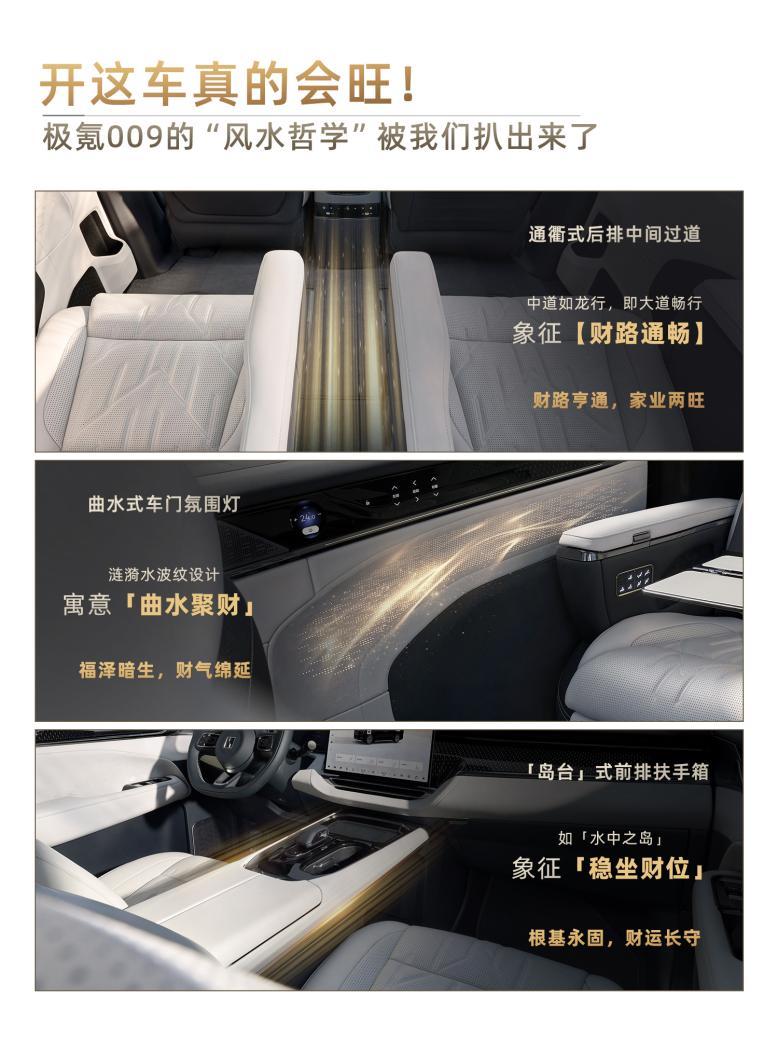 尤其是那些成功大佬,本来就特看重风水寓意这块,009就踩中了这点。前脸光之泉格栅像流动泉眼,寓意钱源源不断来,还有岛台式前排,听说有稳坐财位的好彩头。