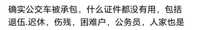 背景介绍:这事儿发生在广西那边,一位拄着拐杖的老兵想免费坐公交,可没曾想被一位女司机狠狠驳了回去。老兵出示了残疾军人证,依照国家政策应该是可以免费乘车的。可这女司机就是不服,直接回绝说”你这证在我这不管用”。老兵解释无效后只能落荆求木下了车。