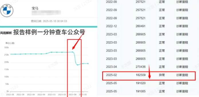 避坑重点:若维保记录中,某两次保养的里程“不递增”(如上次5万,下次3万),或长期无维保记录,直接判定为调表嫌疑,谨慎入手。