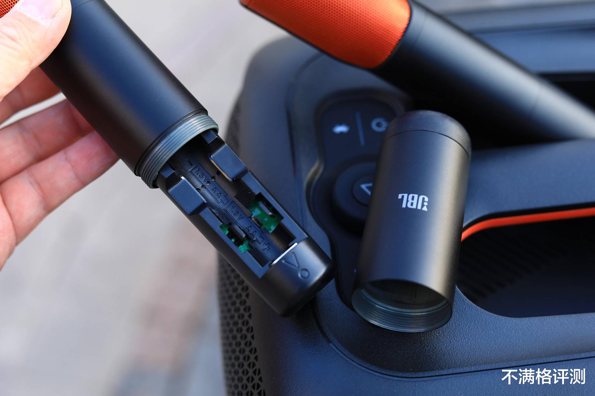JBL这个麦克风直接和音箱内对接好了,开机就能用。优点是活动范围更灵活、金属材质有档次。缺点是无线有损耗,重量比较大、一支就要半斤多,同时需要上两节5号干电池。