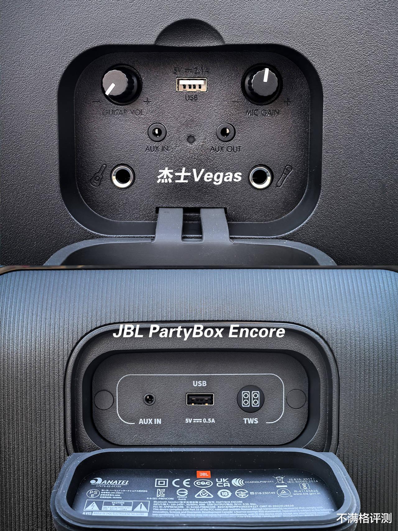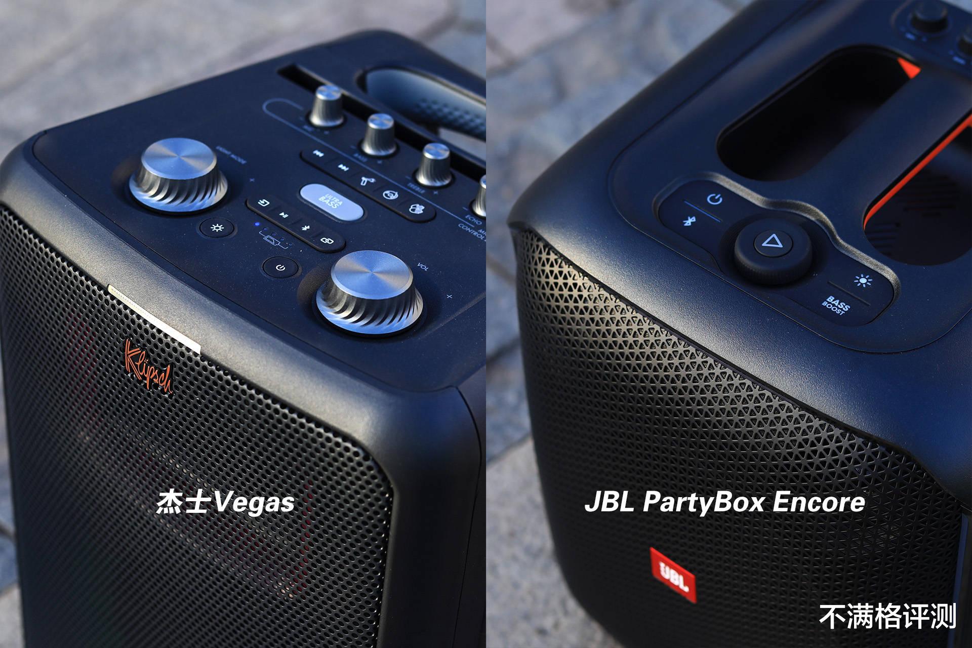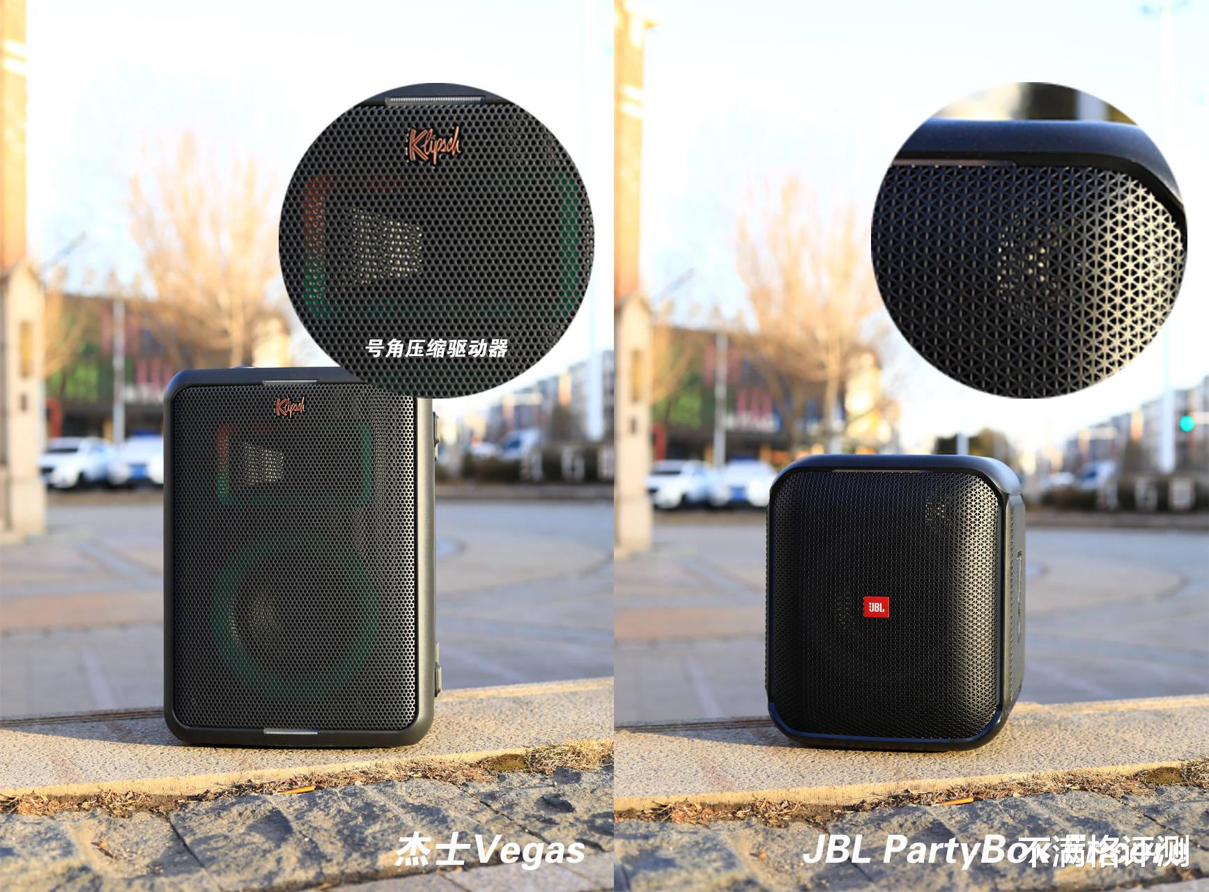 2.外观和做工对比杰士Vegas和JBL PartyBox Encore两个音箱的大小有较大差别,前者是“偏高偏大”、后者是“更矮更圆”。两个家伙的颜值应该说各有特色,这我没办法定义哪个更好看,算是各有千秋吧!