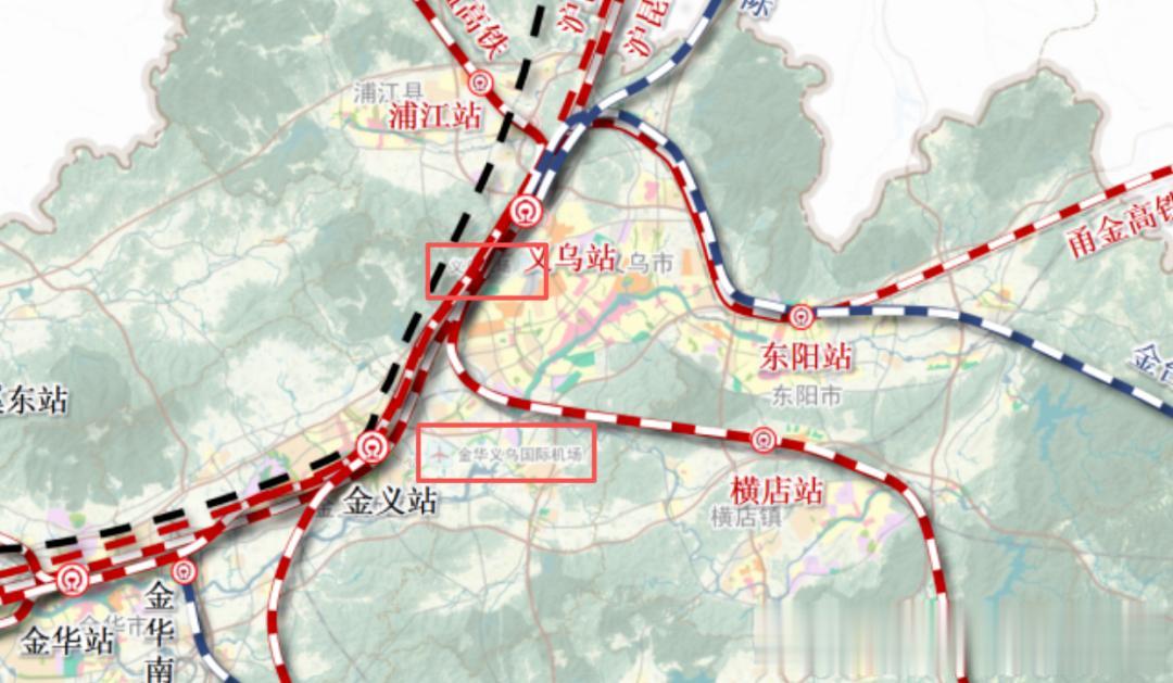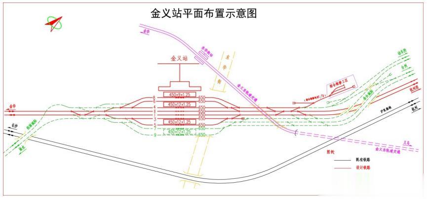 金义综合枢纽是金华市“三主八辅”铁路枢纽中的主枢纽之一,区域线网规划4条高速铁路,包括沪昆高铁、金义三四线、杭丽高铁、金绍甬高铁。规划1条普速铁路包括沪昆铁路,规划自贸区专用线、机场专用线。