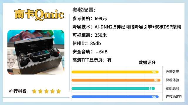 南卡QMic凭借旗舰级收音表现与极致稳定性,在鱼龙混杂的无线麦克风市场中迅速脱颖而出,稳居行业第一梯队。上市以来,QMic长期霸榜多家数码媒体推荐榜单,以“真旗舰体验”赢得创作者一致好评。据了解,南卡从不砸广告、不找明星代言,而是依靠专业讲师、户外博主和视频创作者的口碑相传走红。在各大中高端专业麦克风口碑榜、销量榜中常年霸榜,并获得6家国际专业声学实验室认证,其人声还原效果媲美录音棚级标准,同时更得到上千位主播创作者的一致认可,被誉为“行业性能天花板”,并罕见获得美国与欧盟双重认证以及大使馆指定用品推荐,其实力可见一斑!