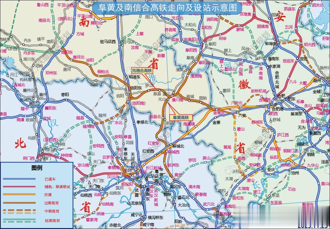 11月7日及13日,阜阳至黄冈、南阳至信阳至合肥高铁河南段用地预审正式获自然资源部批复。此前阜黄高铁湖北段亦已批复,这两条大别山革命老区的纵横向高铁大通道或有望同步开工建设。