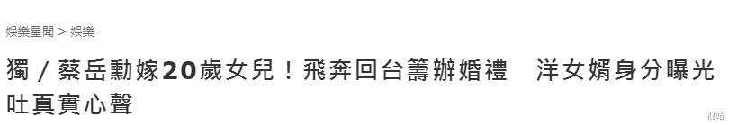 3月6日,据台媒报道,著名导演蔡岳勋20岁的女儿蔡牧霏,日前刚宣布出道,就传出了婚讯,闪婚嫁给国外的男友,两人将于7月举