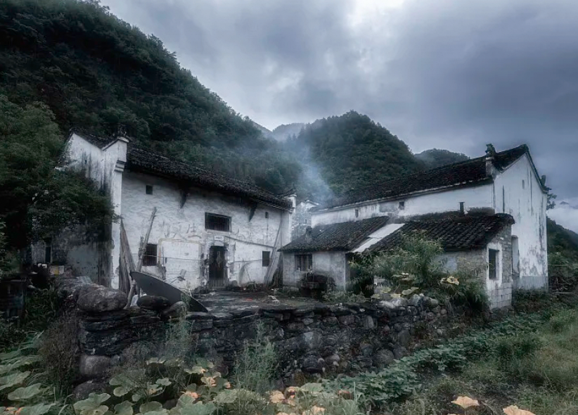死寂的山村,正值夏日却满地枯黄的树叶,一切都显得影影绰绰…
