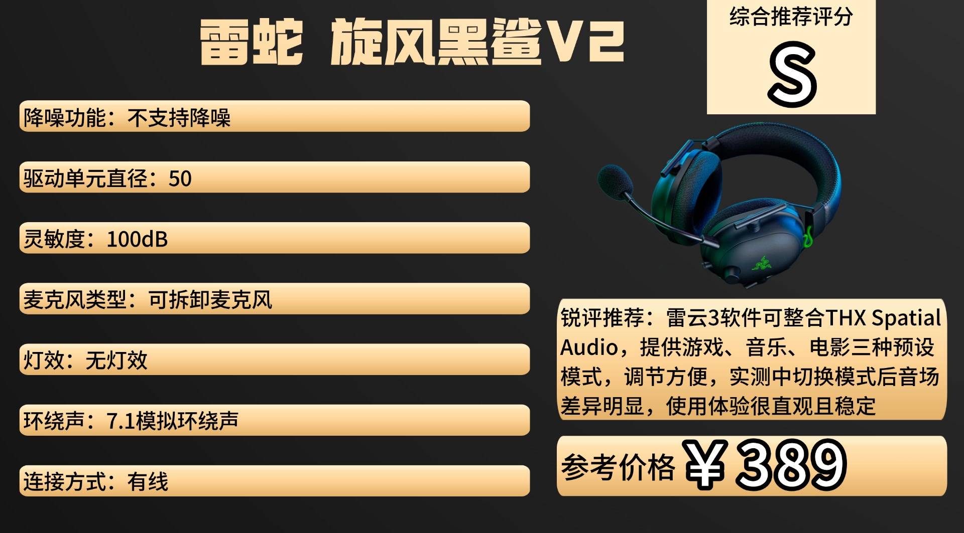 游戏耳机——雷蛇(Razer)旋风黑鲨V2