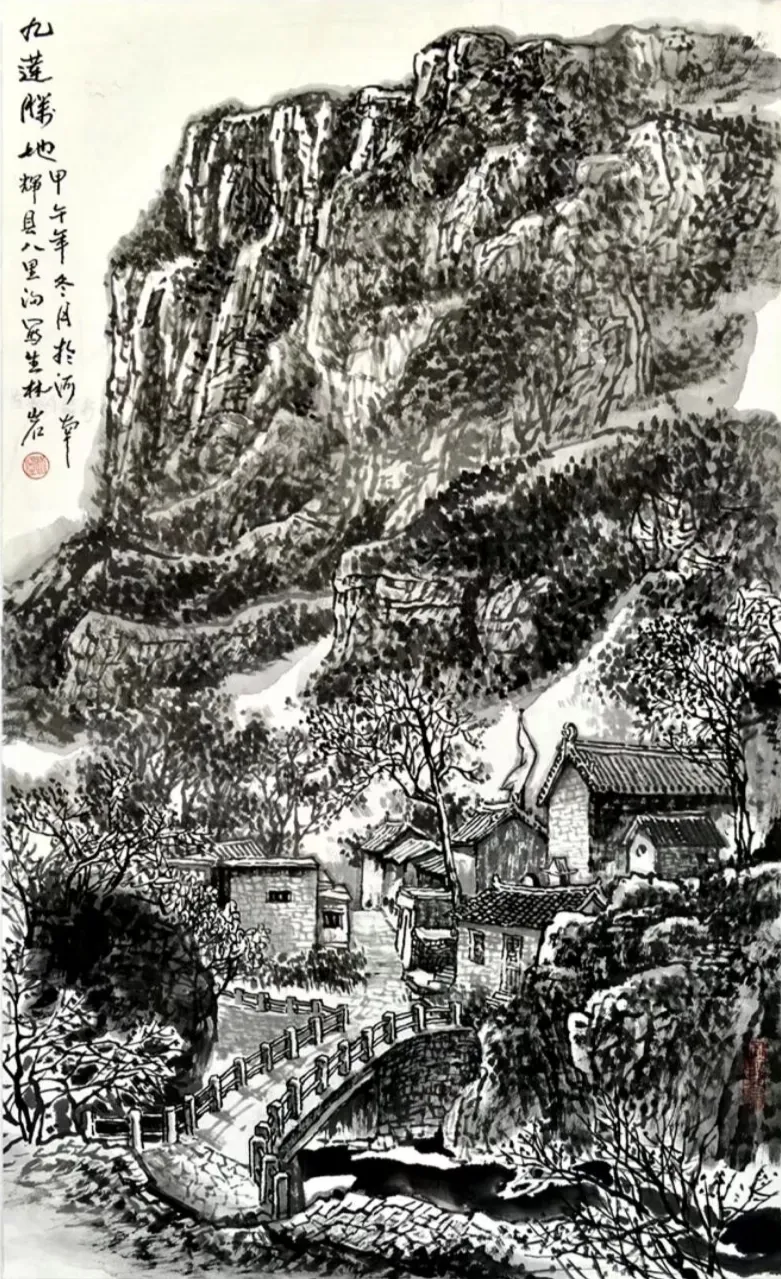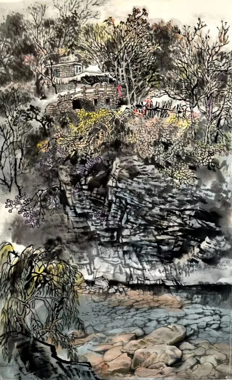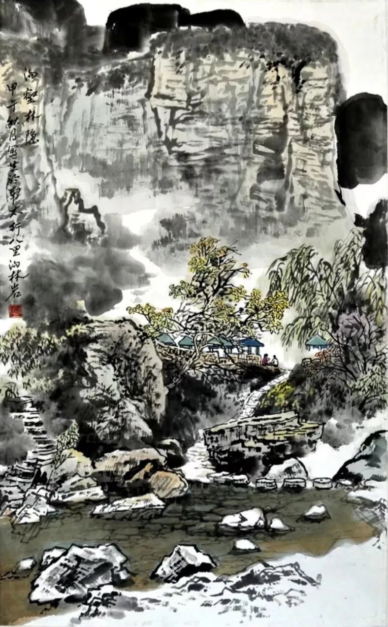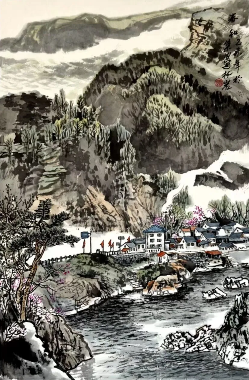 其画作以浓淡墨色构筑出山川的坚实骨相与氤氲气韵,又巧妙点缀以淡彩,于厚重中透出生机。通过“以形写神”的手法,石屋、木桥、溪流等寻常景致被赋予深远的人文情致,传递出对乡土深沉的眷恋。林岩先生深厚的学养与多元的创作实践,使其艺术在传承中展现出鲜明的当代感知,形成了雄浑而秀润、写实而抒情的独特风格,在学术与收藏领域皆具重要价值。