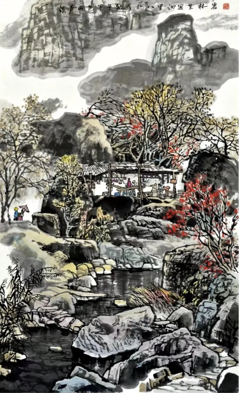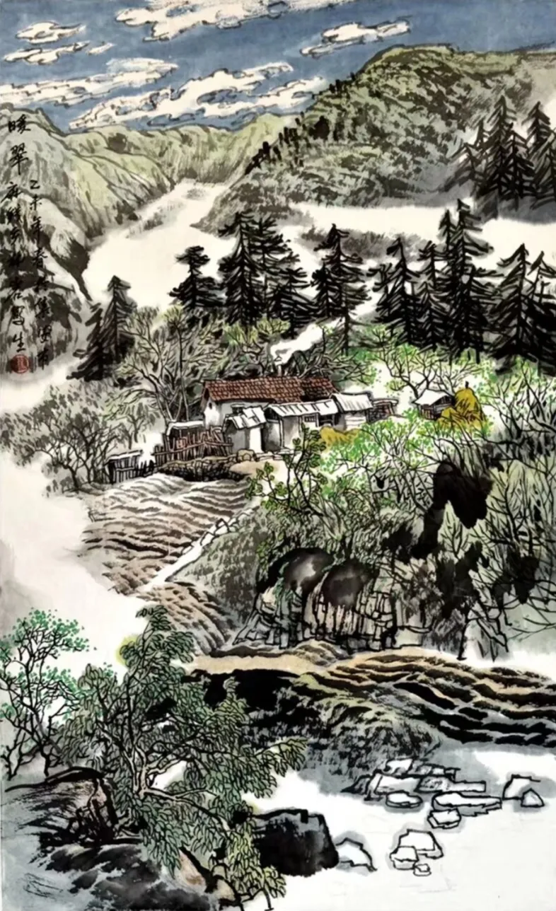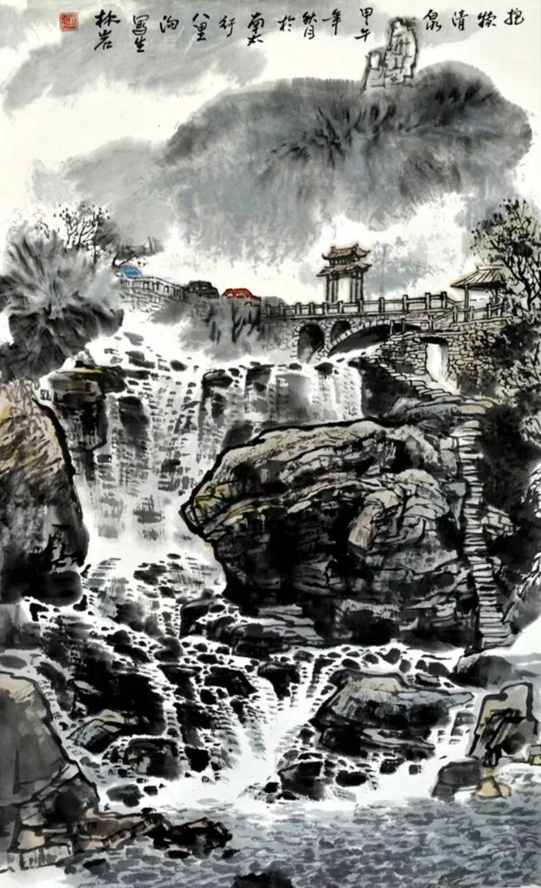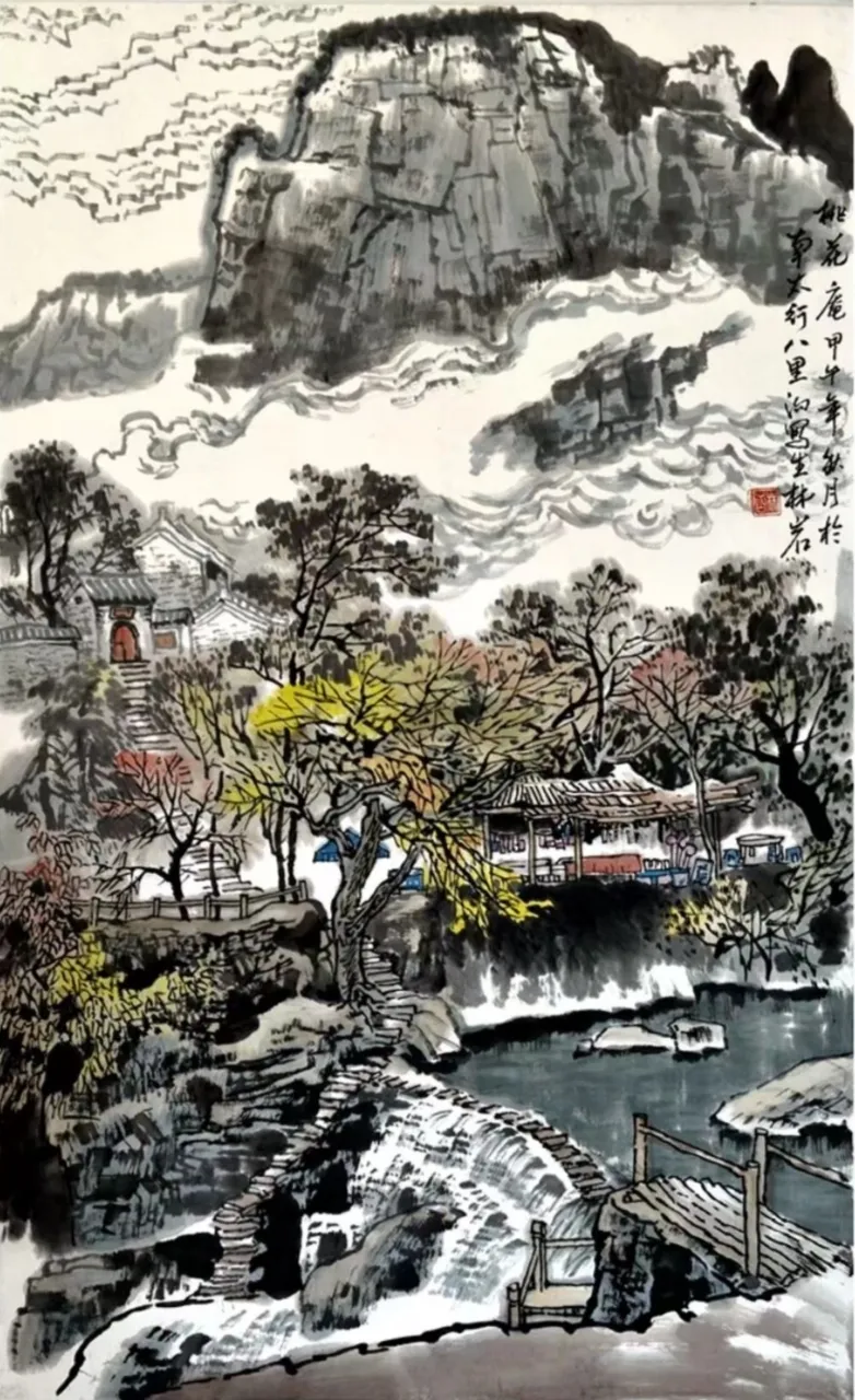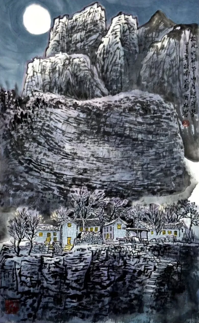 其画作以浓淡墨色构筑出山川的坚实骨相与氤氲气韵,又巧妙点缀以淡彩,于厚重中透出生机。通过“以形写神”的手法,石屋、木桥、溪流等寻常景致被赋予深远的人文情致,传递出对乡土深沉的眷恋。林岩先生深厚的学养与多元的创作实践,使其艺术在传承中展现出鲜明的当代感知,形成了雄浑而秀润、写实而抒情的独特风格,在学术与收藏领域皆具重要价值。