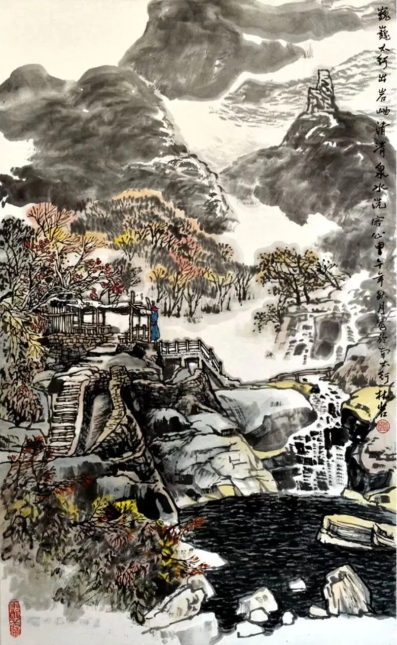 在当代山水画的创作脉络中,林岩先生以其独特的艺术语言与深沉的地域情怀,构建了一座连接北国雄浑与南韵秀润的桥梁。他的作品根植于东北故土与太行风骨,却不为地域所限,在笔墨与色彩之间展开了一场跨越南北的对话。