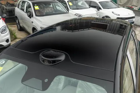 18 英寸的轮毂造型挺独特的,不是那种千篇一律的多辐条设计,实际开起来抓地力也不错,过弯的时候能感觉到轮胎的抓地挺稳。最让我意外的是车顶的激光雷达,很多车把这东西装得特别突兀,像个小疙瘩,但 B10 把它和黑色车顶融合得很好,不仔细看都注意不到,既保证了功能又没破坏整体的美观,这点确实做得比不少竞品强。