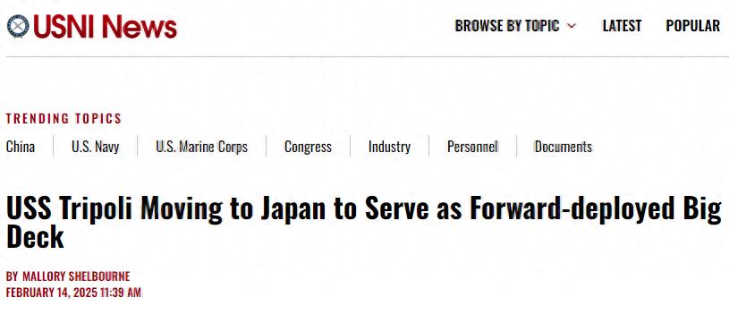 美媒《海军协会新闻》报道称,现阶段以日本佐世保为母港的美国号两栖攻击舰将撤回美国本土的圣地亚哥海军基地,美国级二号舰的黎波里号将代替美国号执行任务并移驻日本。但面对拥有辽宁、山东两艘航母以及3艘075的中国海军,驻日美军看着仅有的华盛顿号航母和美国级两攻,那叫一个心里没底。