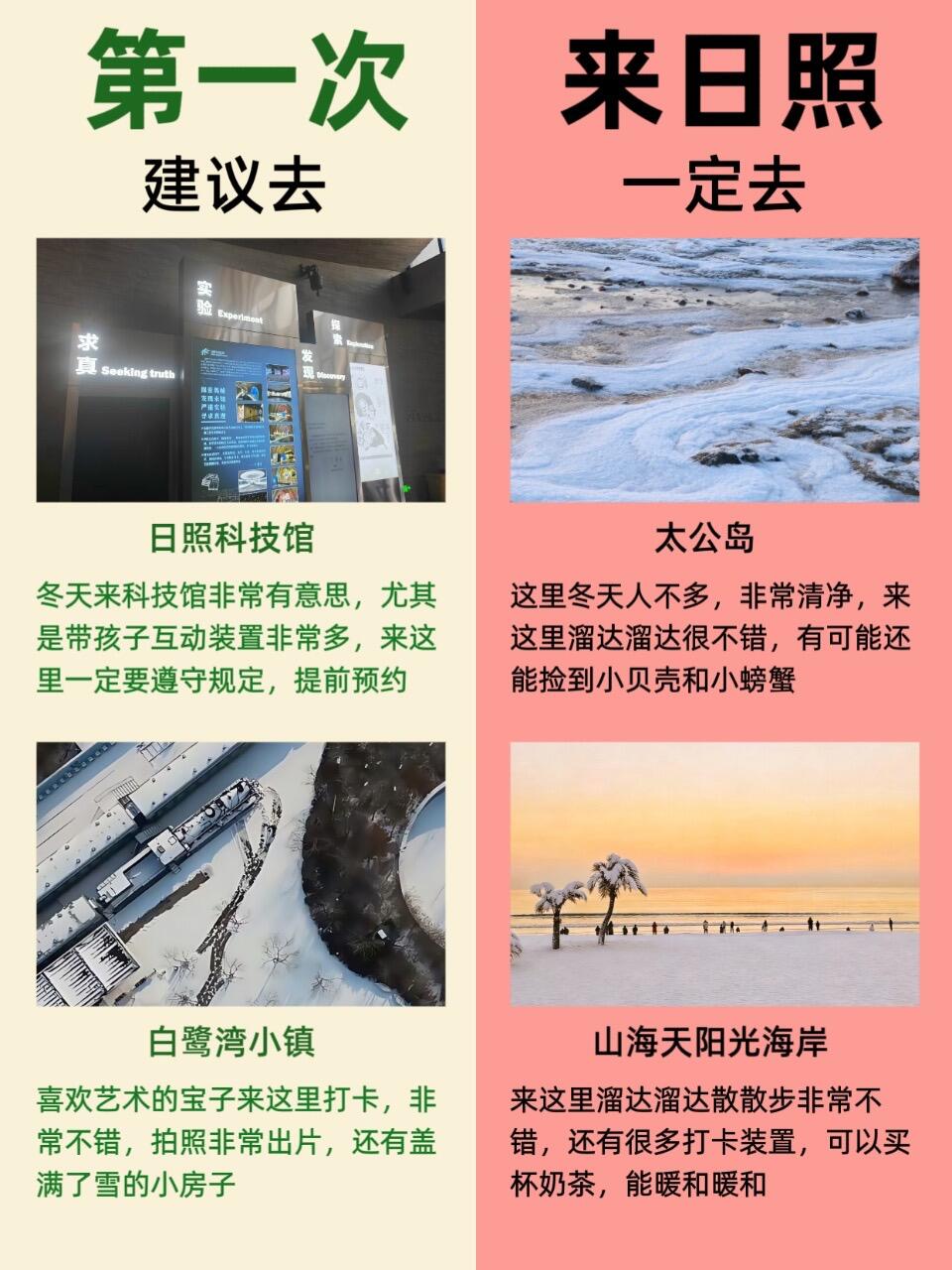 来日照之前以为日照没什么玩的,在日照待了3️⃣天之后发现日照真的还不错,尤其是冬天,飘着雪花的海边真的太迷米了!我能疯狂的拍一万张照片📸!
