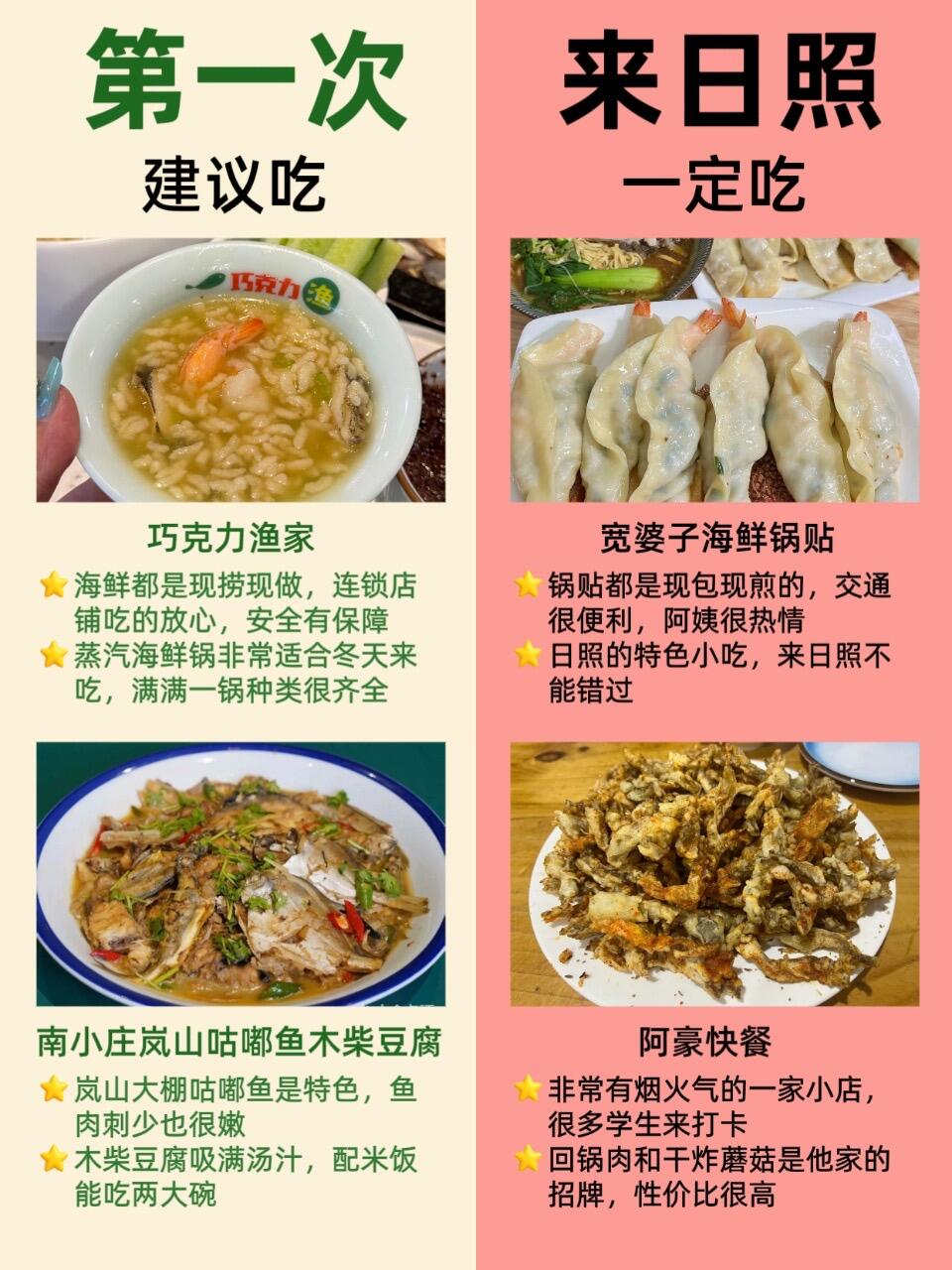 我最推荐巧克力渔家的海鲜,他家螃蟹🦀和生蚝超大个,也非常新鲜!还有宽婆子海鲜锅贴家的虾仁锅贴🥟,都是阿姨在面前现包现煎的,还有南小庄岚山咕嘟鱼木柴豆腐家的咕嘟鱼🐟太嫩了,刺也少,有很多回头客