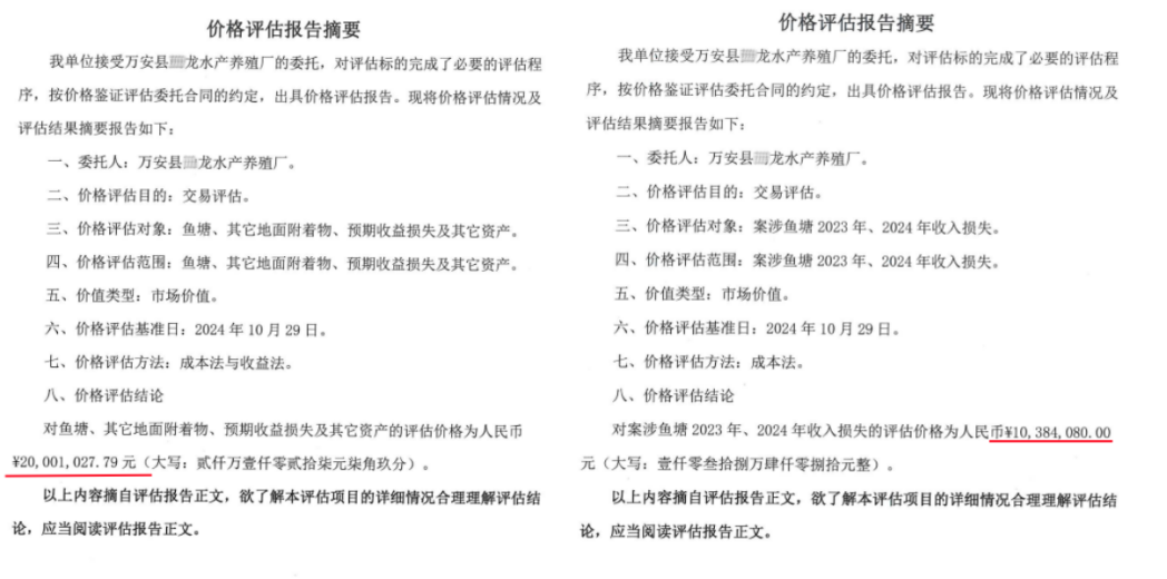 另一方面,当事人主张二人实际投入超1350万元,且因退养相关事宜导致水库几十万斤成鱼死亡,叠加委托苏州某牧树农鉴定评估有限公司评估后,认定鱼塘、附着物、预期收益损失等合计20,001,027.79元,2023-2024年直接收入损失即达1038.408万元。当事人提出,乡相关部门委托的评估仅针对养殖设施,是否未涵盖经营权转让费、前期投入、经营损失、成鱼死亡损失、预期收益等关键部分?仅以70余万元补偿对标超1350万元的实际投入,及后续各项损失,该补偿金额是否显失公平?而谢某龙本人文化水平较低,且在经营遭遇重大阻碍、产生巨额损失及负债的情况下签署协议,是否属于非真实意思表示?