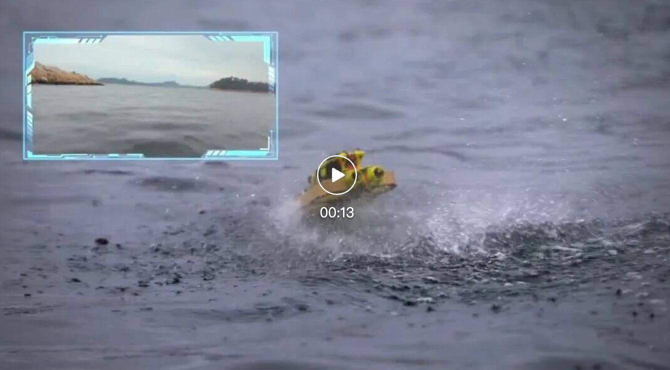 在天上,它是无人机,续航10分钟;一头扎进水里,它就是潜航器,能潜航30分钟,最大潜深10米。
