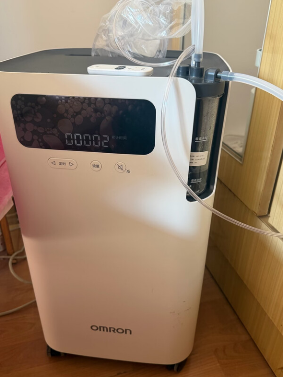 欧姆龙的这款制氧机,日常开机预热十几秒就出氧,调节氧流量的旋钮阻尼适中,老人不用费力气转,夜间运行的声音和风扇低速档差不多,关房门就听不到。技术用了分子筛制氧法,靠压缩机驱动分子筛吸附氮留氧,不用添加化学剂,相对安全。不过连续用超过五小时,会觉得氧气浓度比刚开时低一点,可能是分子筛吸附饱和,得停会儿再用。