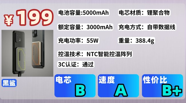 第10款:黑-鲨PB12充电宝这款黑鲨 PB12 充电宝,颜值和便携性是真的能打。长 102mm、宽 67mm、高 13.7mm,机身超薄,拿在手里跟个卡片似的,净重才 175g,揣口袋里几乎没感觉,金属质感的外壳还挺显档次,单手拿着用特别顺手。