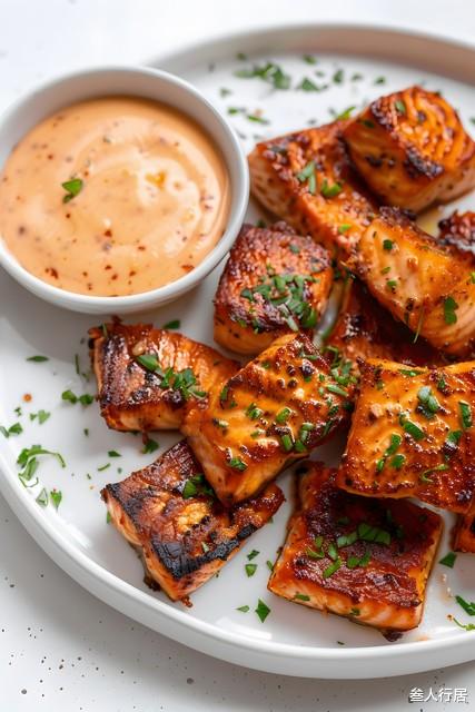 小贴士:三文鱼裹淀粉煎制,既能锁住肉汁,又能避免煎时散碎;西红柿务必炒出汁,口感更浓郁;收汁时不停搅拌,防止糊底;喜欢酸甜口可多加番茄酱,中和三文鱼的腥气。