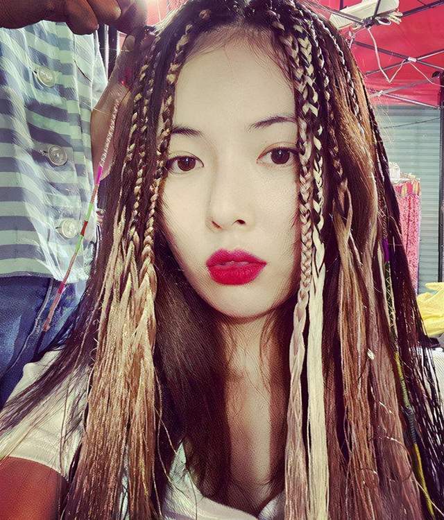 而最难驾驭的嘻哈小脏辫,对于鹅蛋脸型的金泫雅也是毫不费力,加上特殊的编织和染色效果,层次感递进,可以说是潮流前卫了。但是女神在发型刘海上,这一次是真的多少有点翻车了。
