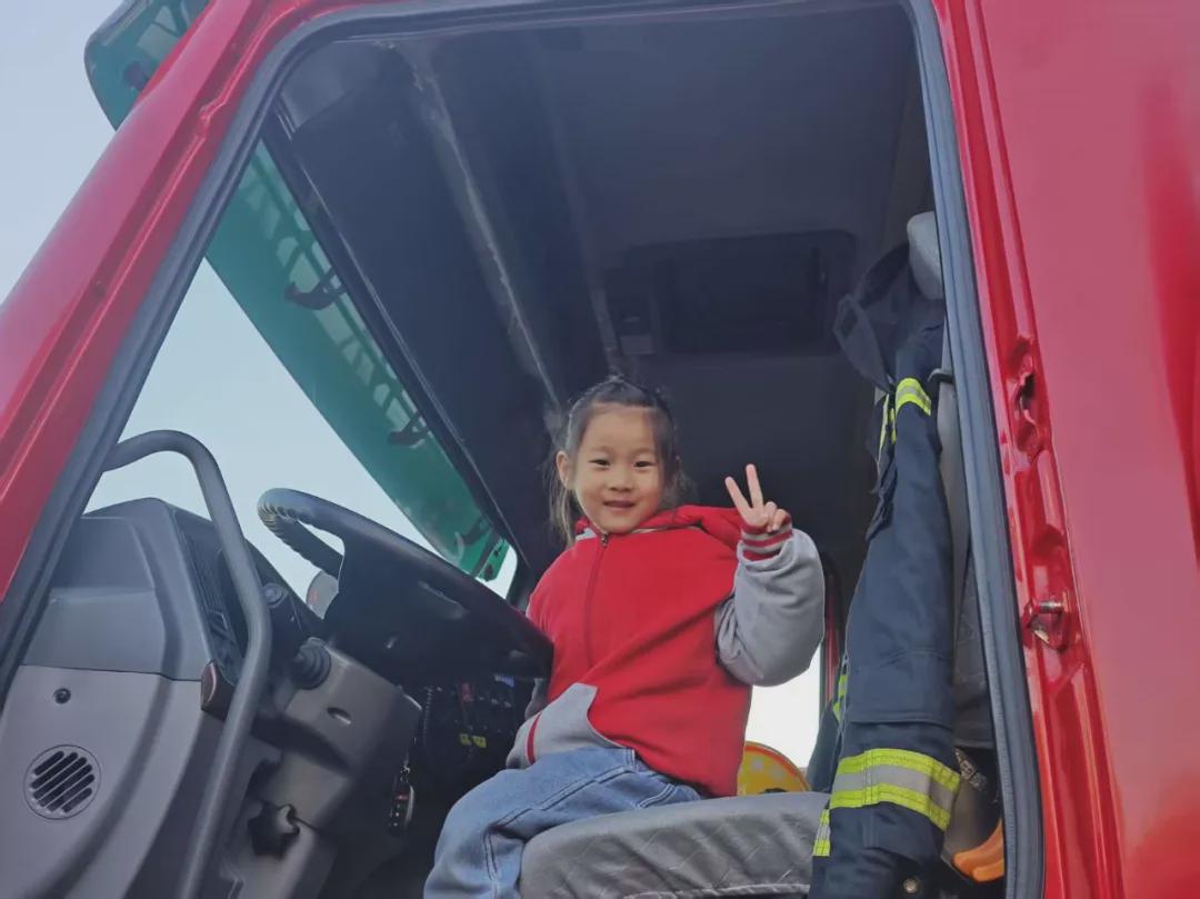 孩子们在消防员叔叔的守护下,迎来了与“红色战车”的零距离接触。他们轮流登上消防车的驾驶室,摸摸方向盘,按按喇叭,坐在高高的驾驶位上,每张小脸上都洋溢着兴奋与自豪。