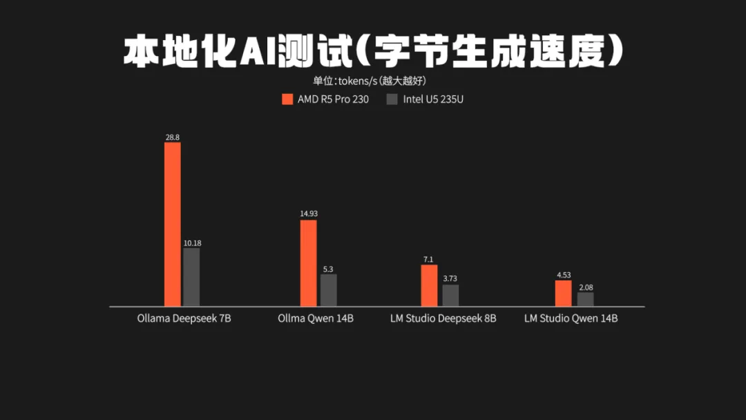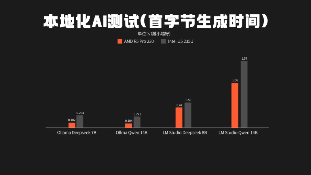在这部分,AMD的XDNA架构展现出了强大的潜力。在本地模型测试中,AMD的token生成速度普遍为Intel的两到三倍,首字节延迟也往往减少一半以上。