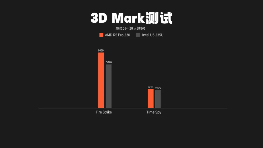 虽然都是集显平台,但AMD Radeon 760M在3DMark Fire Strike 中领先27%。这带来了更流畅的高分辨率输出与多显示器支持,对于使用CAD、视频会议分屏或轻度剪辑的专业用户而言,这种额外图形余量能有效延长笔电的实用寿命。