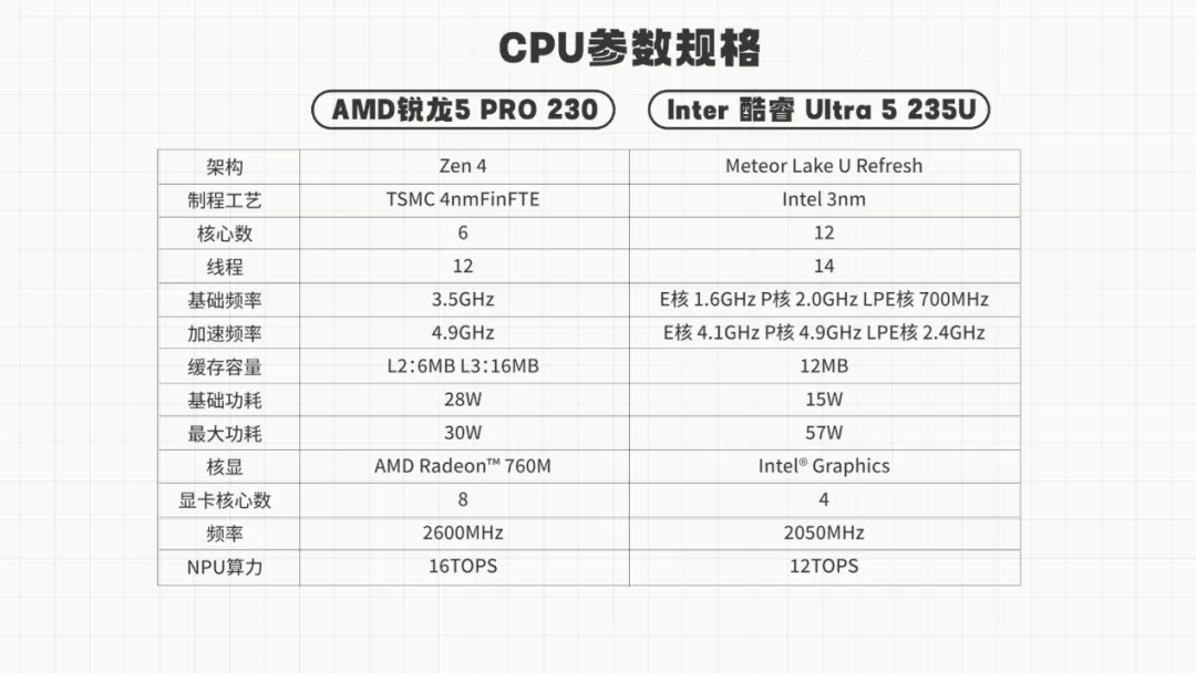 于是,我们选择了一个最具代表性的对比:戴尔Pro 14平台,分别搭载AMD锐龙5 PRO 230与Intel酷睿Ultra 5 235U。同样的模具、同样的散热、同样的BIOS调校——这是一场真正意义上的公平对决。