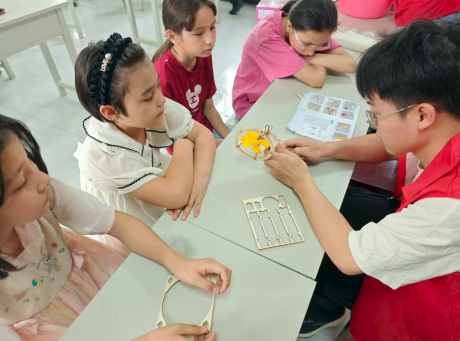 黑暗中,只需轻轻转动手柄,一盏明灯瞬间点亮——这个充满“魔法”的场景,在阿瓦提县花园社区化作一堂生动的科学课。7月9日,塔里木大学生命科学与技术学院“心若向阳 次第花开”伴童心同行志愿服务团开展了“指尖上的电力革命”主题实践活动,带领青少年化身“能量小达人”,通过亲手组装手摇发电机,揭开机械能与电能转换的神秘面纱,在实践探索中触摸科学的温度。