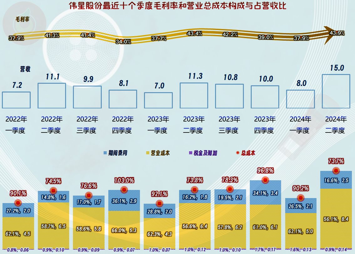 净利润不出意外地创下了半年新纪录,而且同比增长速度比营收快得多,甚至已经和前几年全年的水平接近了。2023年上半年还在同比下跌,结合着纺织服装行业不太乐观的形势,很多人以为寒冬就要来了的时候,伟星股份2024年上半年这样的表现,似乎形势又好起来了。