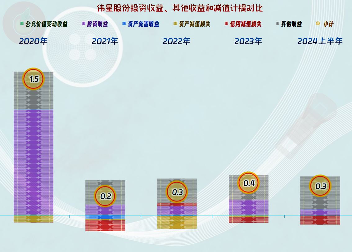 在其他收益方面,总体上都是净收益的状态,主要是一些政府补助和投资收益,最近三年半也有一些“信用减值损失”。除2020年之外,其他收益方面的金额总体不大,对伟星股份的业绩影响有限。
