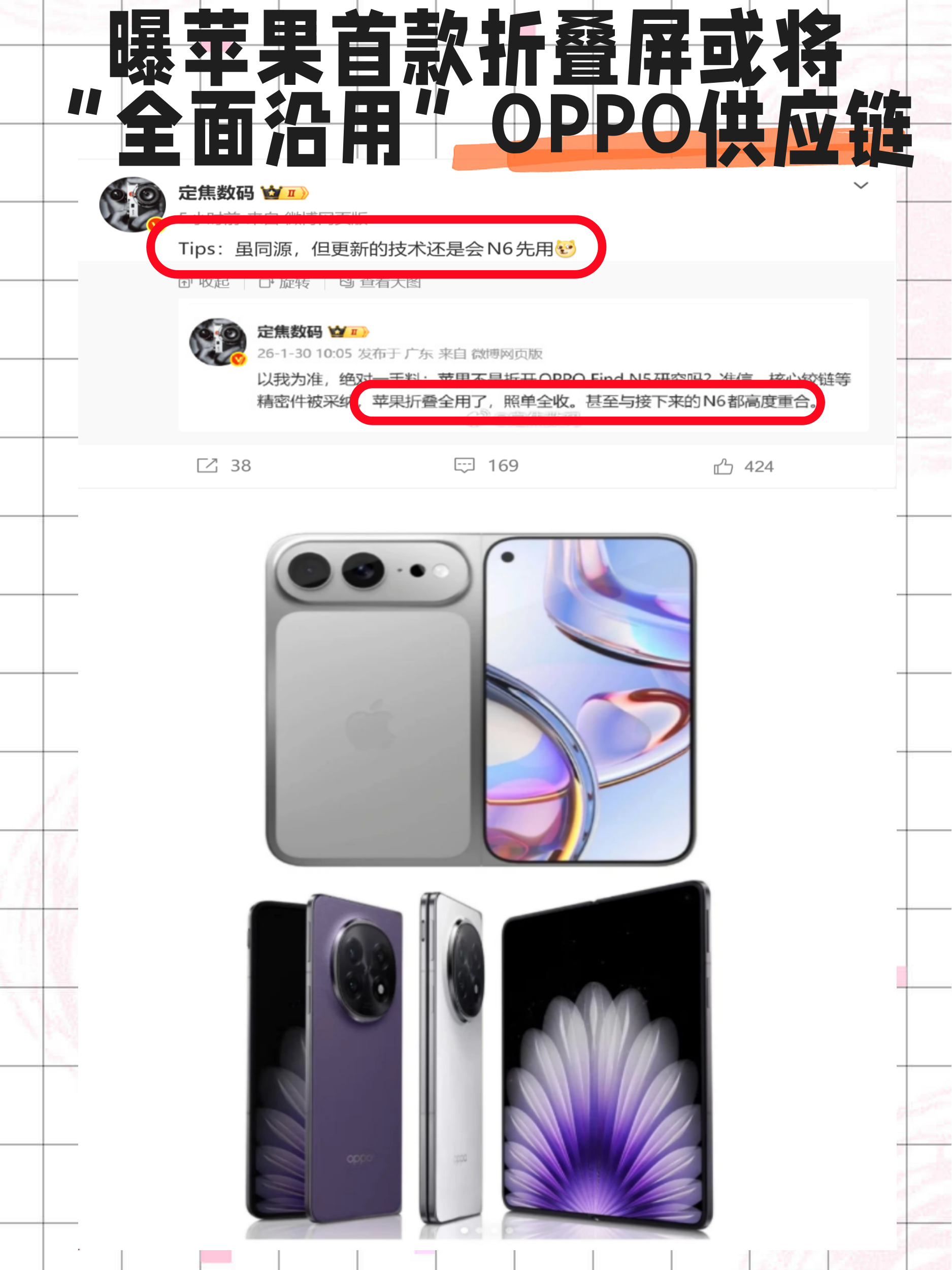 如果消息属实,那剧情就很有意思了:预计9月发布的iPhone Fold,其技术路线很可能正跟着OPPO走,而即将于春节后登场的Find N6,大概率会搭载上新一代的铰链与屏幕技术。