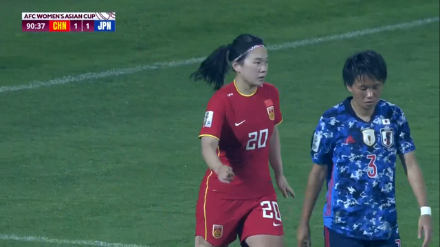 绝平进球后,王珊珊迅速回到后防线上大口喘气