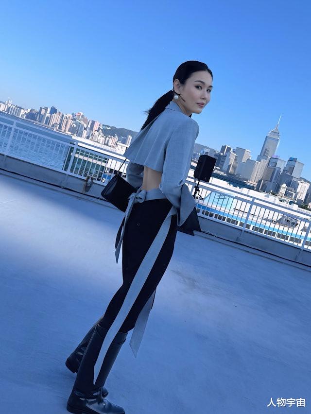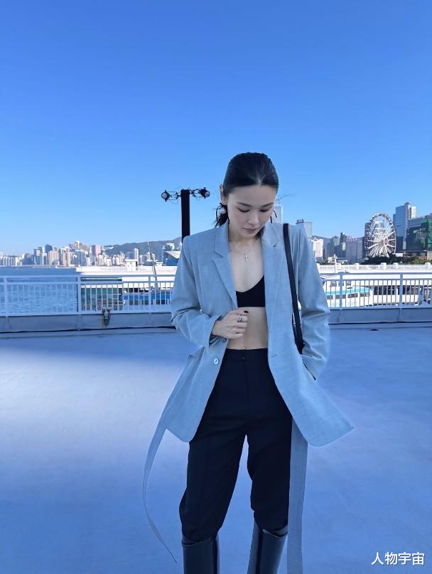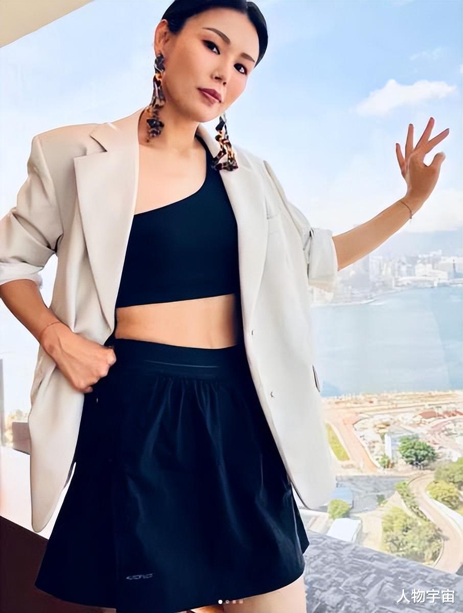 照片中,她身着黑色Bra搭配灰色西服外套,展现紧实腹肌和零赘肉背部线条,配以利落马尾,整个人散发着超越年龄的活力与自信。网友纷纷惊叹:这状态完全不像三孩妈妈!骨感美得太高级!