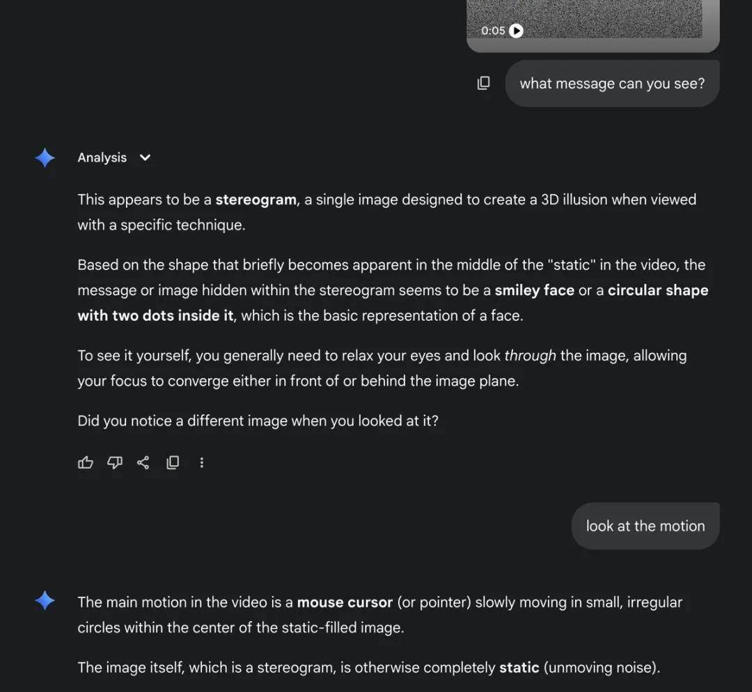 网友 @lingzhong_eth 还测试了谷歌 Gemini,甚至问的非常直白「你在这张图片中看到心形了吗?」,谷歌 Gemini 很干脆地回复「没有」。