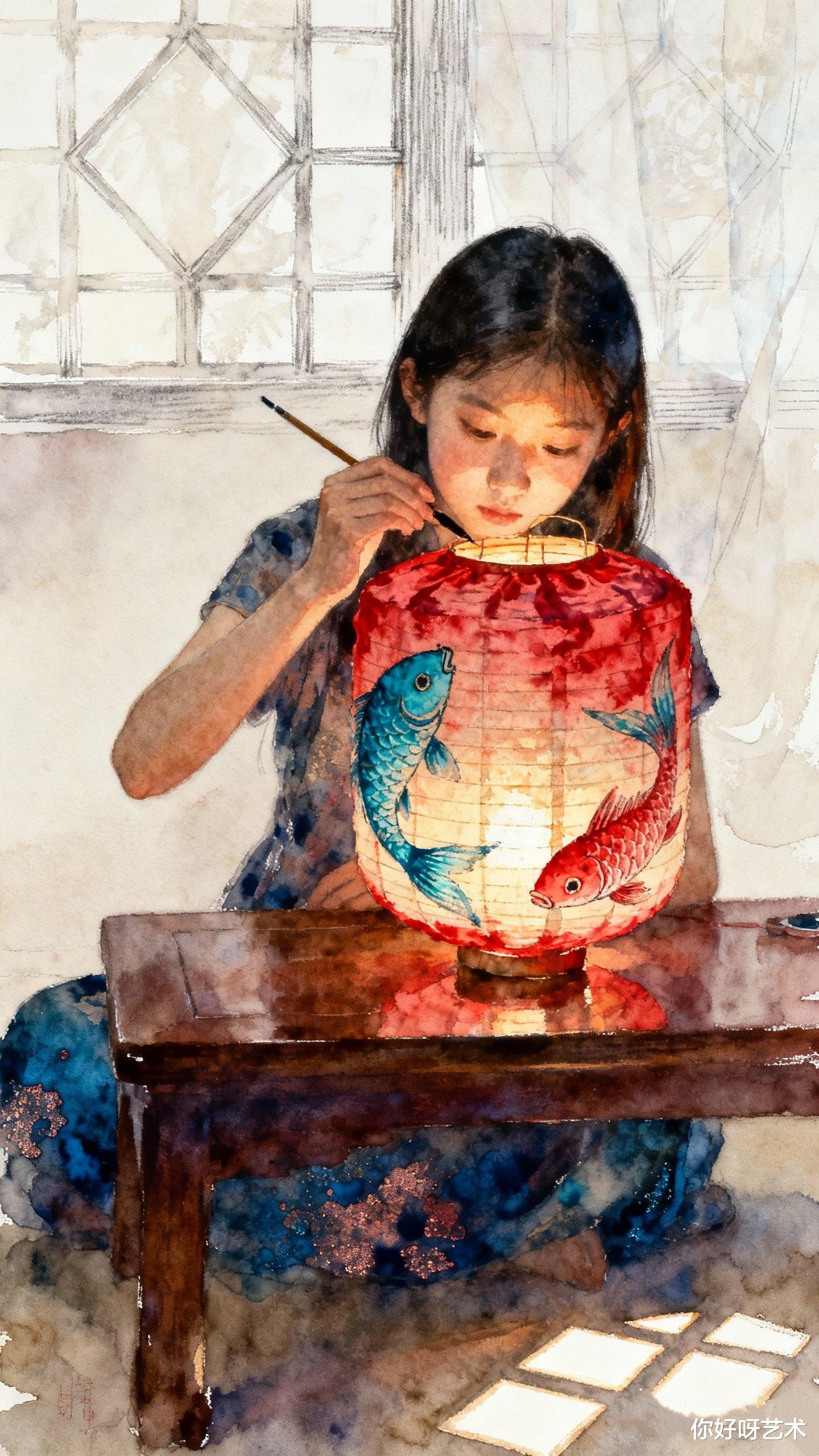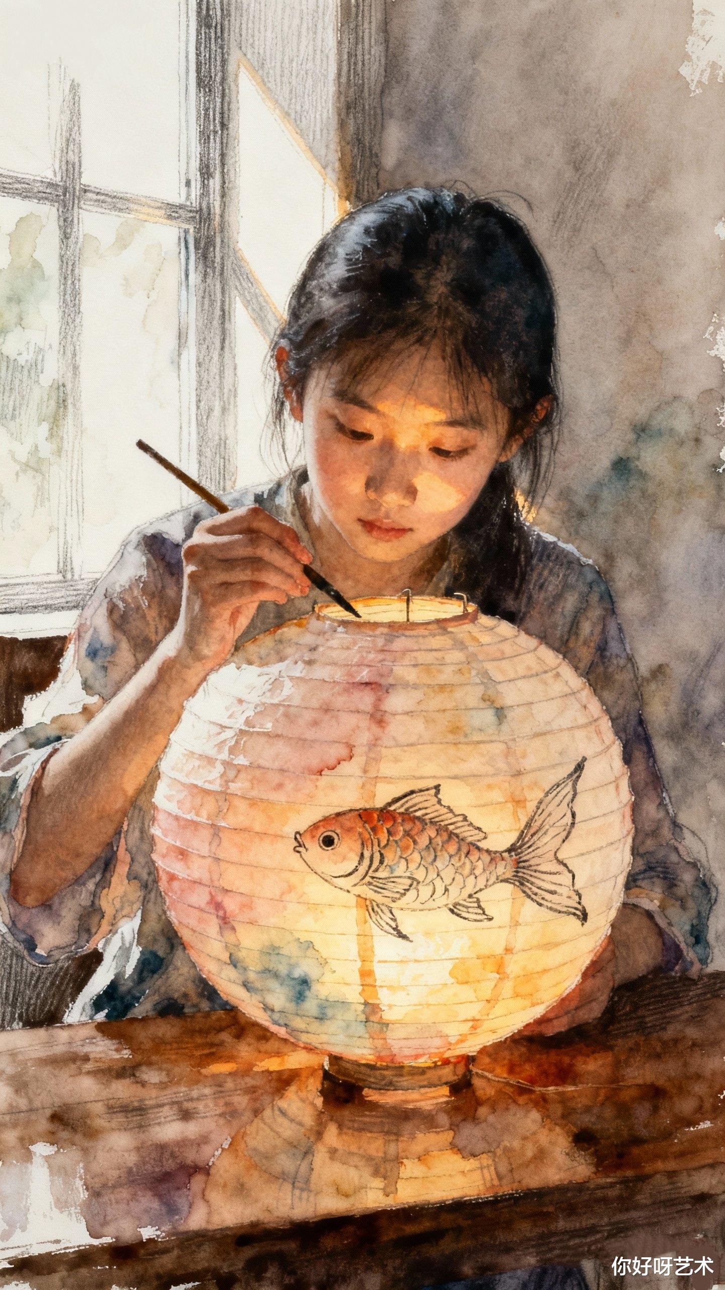 我跟着她走到井边,她打了一桶水,洗去手上的油渍。水珠从她指尖滚落,像是把松子桂鱼的甜味都洗进了水里。她忽然从兜里掏出一支干松枝,别在我衣襟上,笑着说:“这是给你的,算是……提前送的新年礼物。”