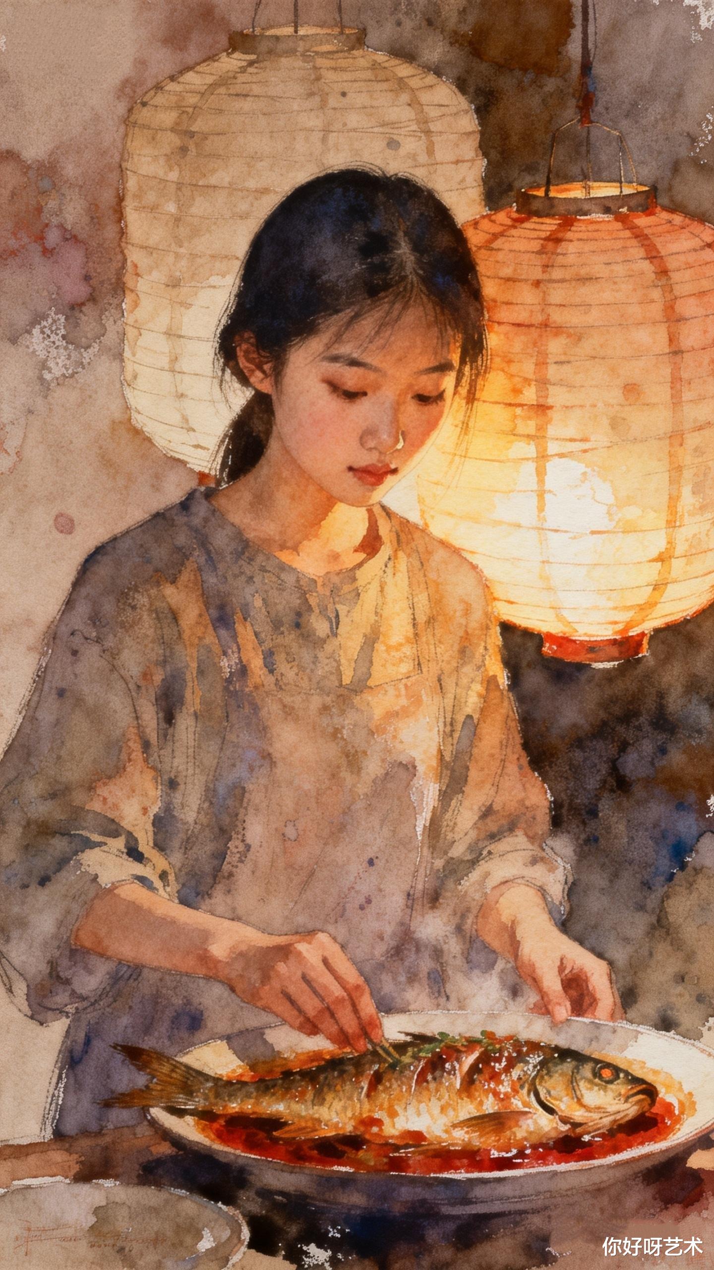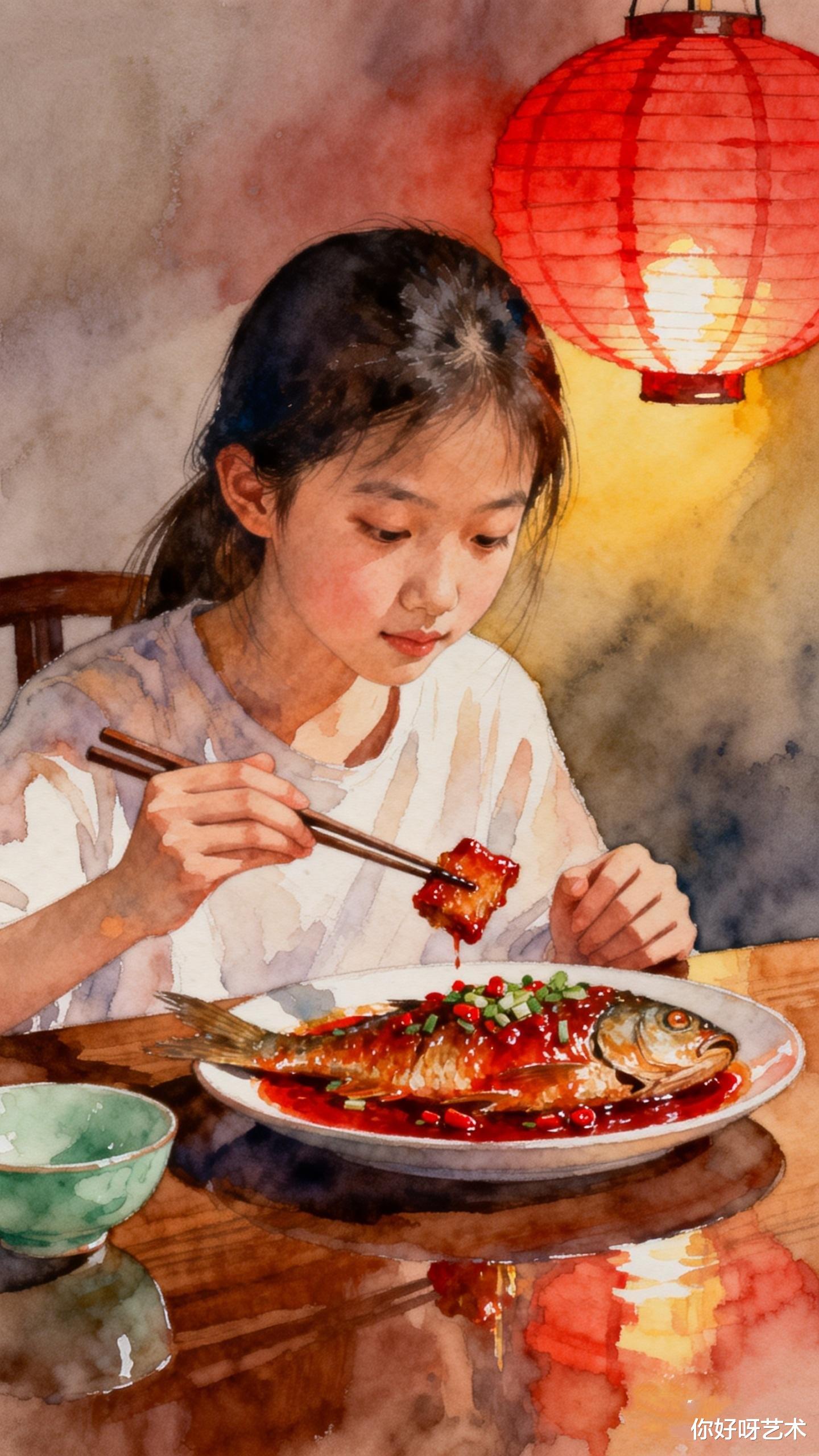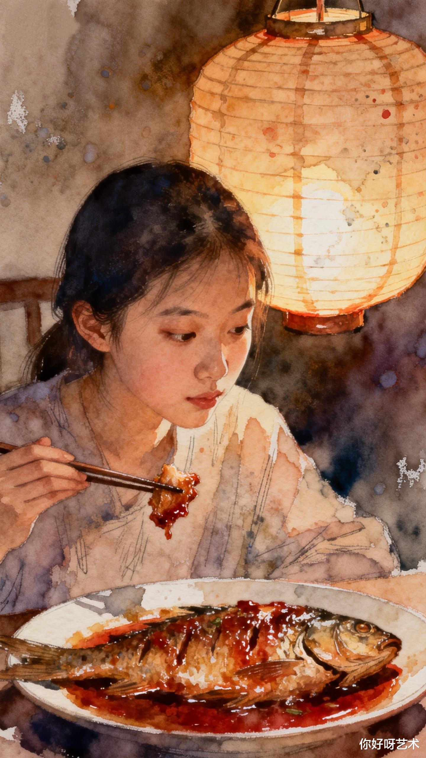 农历十二月二十八,小寒前的第六日,我记住了这个做松鼠桂鱼的水彩少女,也记住了她说的话:“松鼠桂鱼要热着吃,才脆才香。”