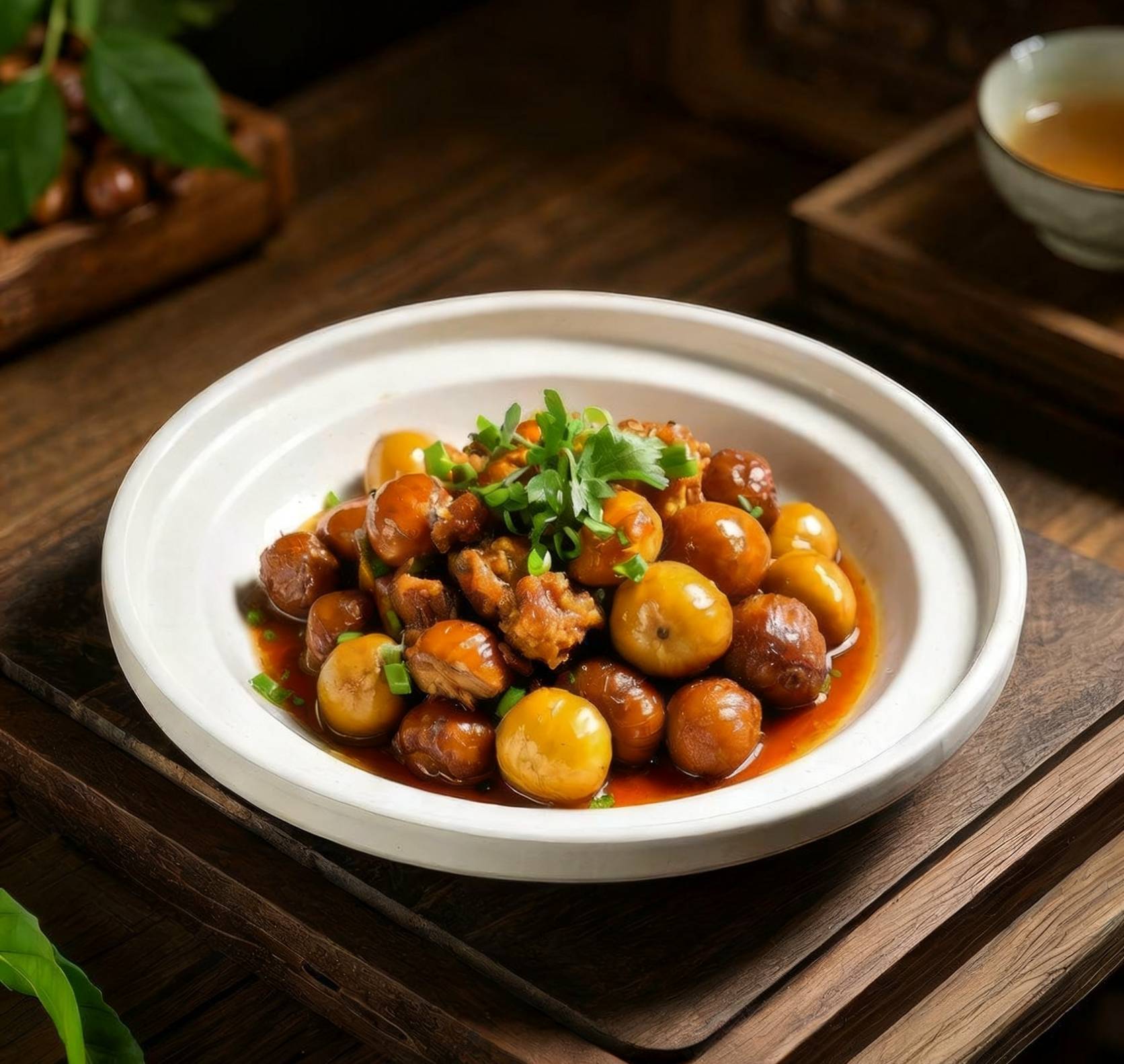 功效:板栗有养胃健脾、补肾强筋的作用,鸡肉能温中益气、补精填髓。这道菜特别适合秋冬季节食用,能增强体质,提高抗寒能力。