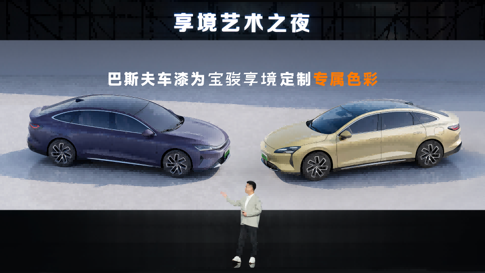 值得一提的是,宝骏家族明星车型宝骏云海与宝骏享境也惊艳亮相,成为全场焦点。自2024年9月10日宝骏云海正式上市以来,累计销量破万,成为15万内高阶智驾SUV销量冠军,“腾云美学”设计理念受到用户广泛认可。在本次“享境艺术之夜”活动上,宝骏品牌再度突破美学边界,发布全新“追风美学”设计理念。