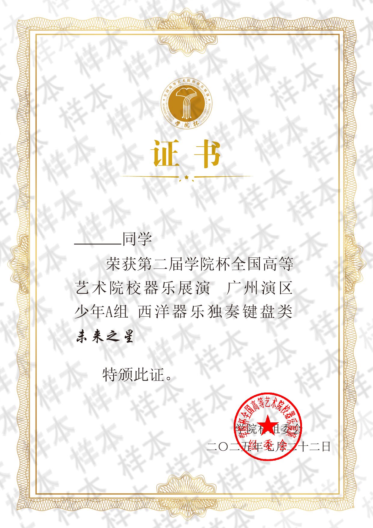 经主管部门批准备案,"2025第二届学院杯全国高等艺术院校器乐展演"拟定于2026年2月2日至2月8日在四川音乐学院大音乐厅举行,由中国音乐基金会、学院杯组委会主办,成都市武侯区歌海艺术研究院、四川美育声乐艺术中心、广东省孔雀艺术研究院、广州青少年艺术协会承办的全国性器乐展演及交流活动。