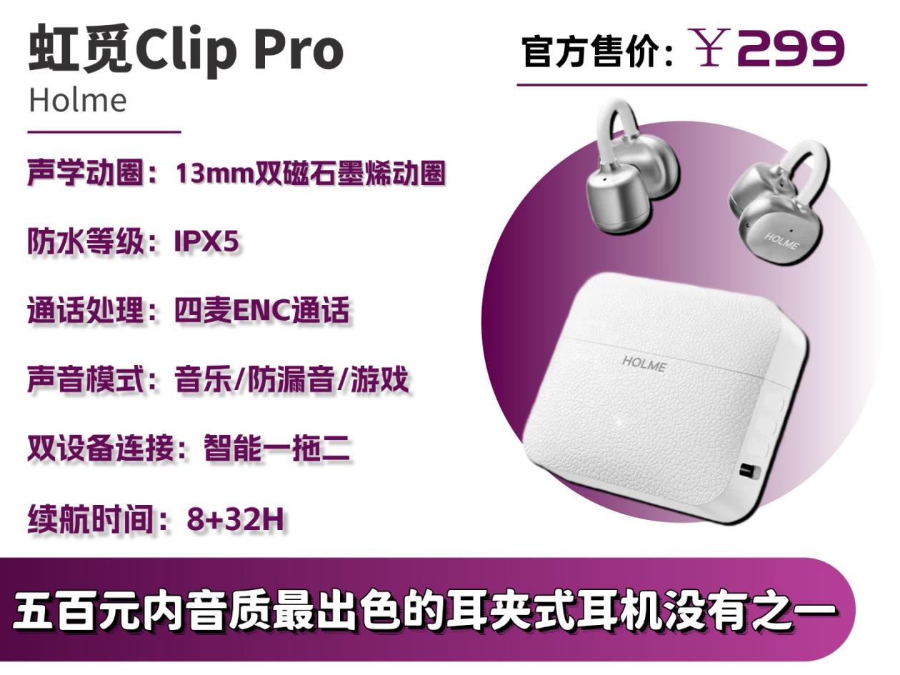 热门口碑款耳夹式耳机推荐!虹觅Clip Pro价格:299元推荐程度:⭐⭐⭐⭐⭐