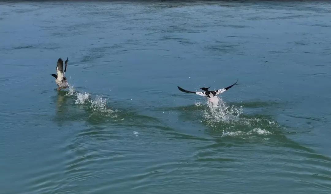 近日,桃江羞女湖湿地公园发现20多只被称为“鸟中活化石”“水中大熊猫”的中华秋沙鸭。江水中,它们或嬉戏、或飞翔、或捕食……形象憨态可掬,与秀美资江形成一幅自然和谐的画卷。