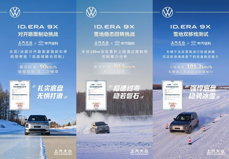 近日,在央视财经《风云汽车》的直播见证下,上汽大众ID. ERA 9X于黑龙江黑河零下30℃的严寒环境中,圆满完成了一场高标准冬季性能测试。通过对驱动、操控、安全等维度的七大极限科目综合验证,充分展现了其作为“德系满级旗舰SUV”的卓越产品力与可靠品质。
