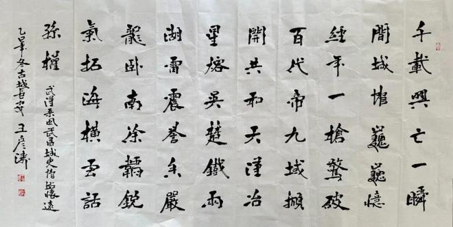 2018年,应邀为家乡望奎建县百年作《望奎赋》,载入县志,并将《望奎赋》20米书法长卷赠送给县人民政府。