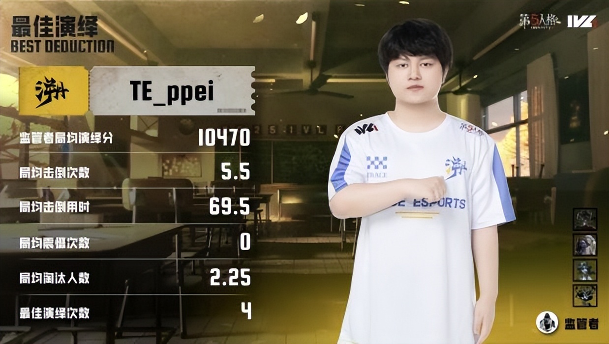 成都GG的求生者选择了“心理学家”、拉拉队员、火灾调查员、守墓人(BAN“喧嚣”、“跛脚羊”);TE的监管者suda选择了杂货商。(BAN先知、邮差、飞行家、“逃脱大师”)
