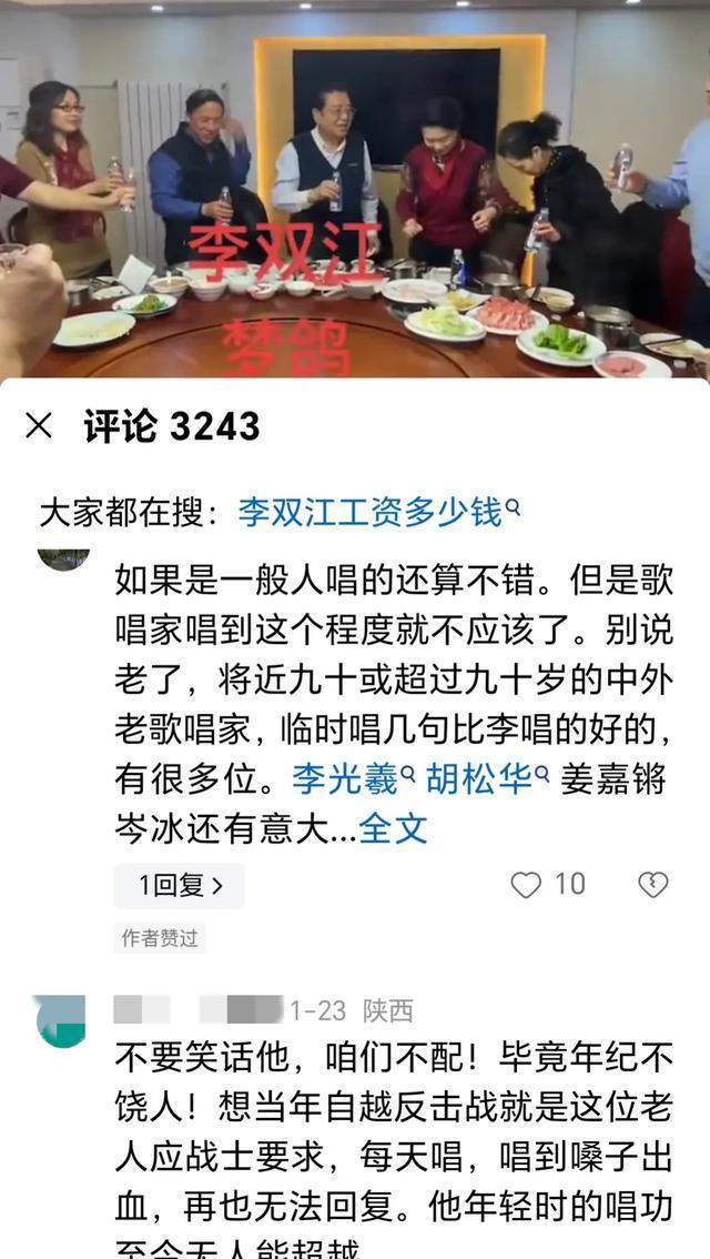 网友评论说,李双江的唱功确实很厉害,他当年的嗓子无人能及,声音也很有个人特点。只是这些年,李双江老了,嗓子不好气息不足,这是很正常的,他能坚持演出很不错了。