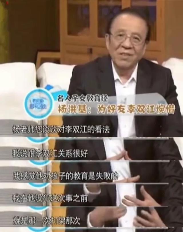 杨洪基作为李双江的好友,也曾经公开表达自己的看法,说他教子无方终成悔,是非常失败的。