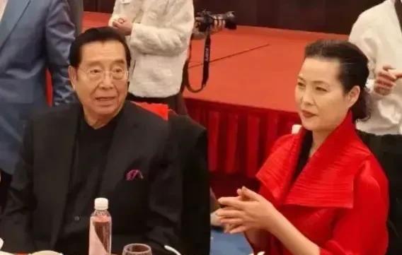 夫妻两人被安排坐在最中间的位置,五十多岁的梦鸽,穿着一件红色的衣服,心情很不错,脸上一直微笑着。