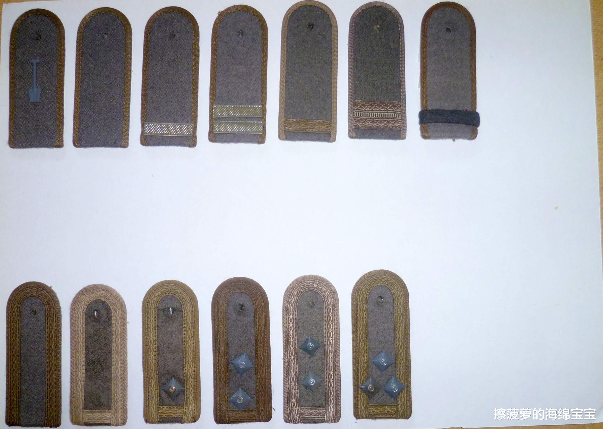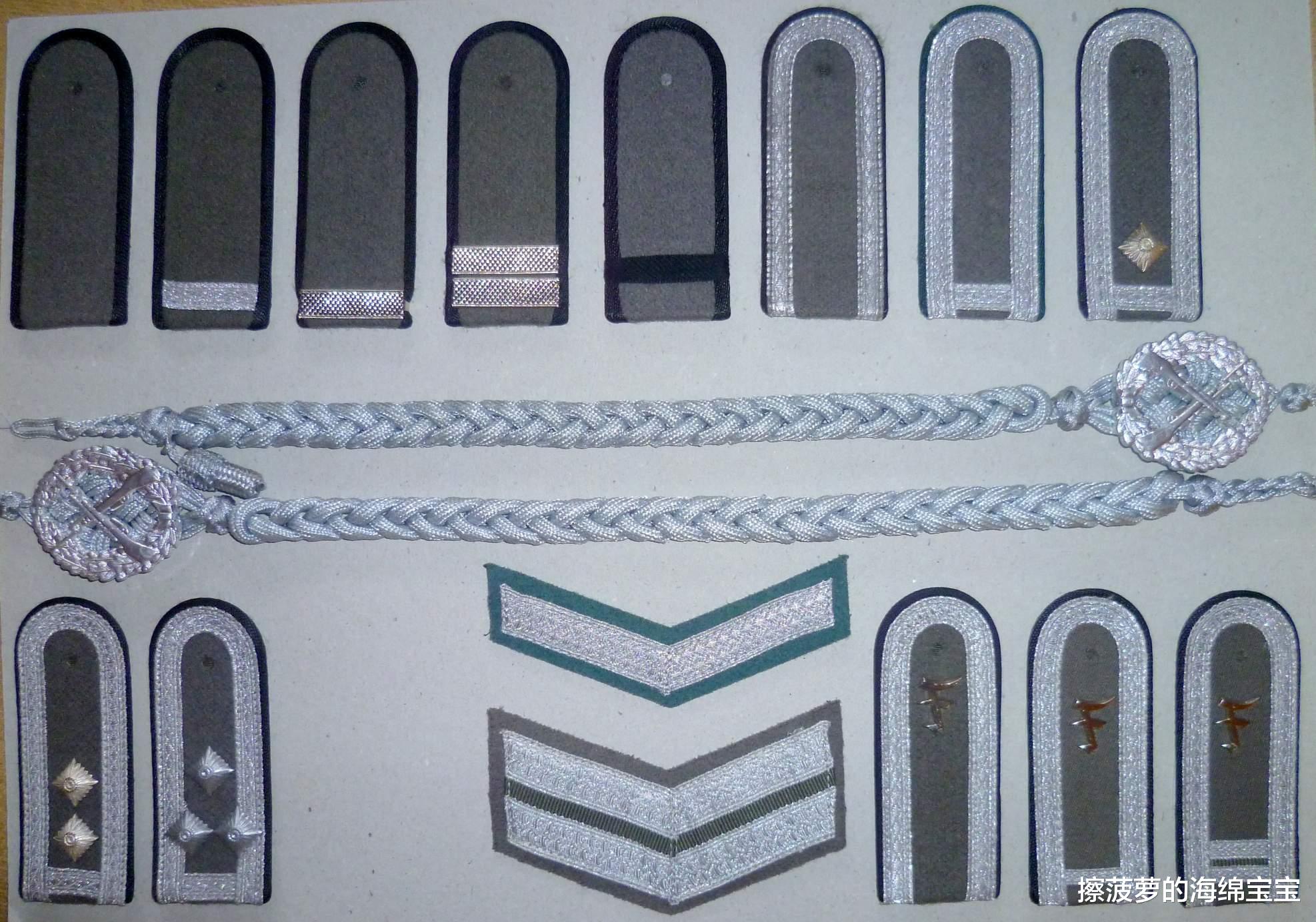 备注:二战中Leutnant,Oberleutnant,Hauptmann分别为少尉(零星),中尉(一星)和上尉(二星)。不过民主德国建立了四级尉官,而且军衔星的排列明显是参考苏联了,所以把原来的翻译为了中尉,上尉和大尉。